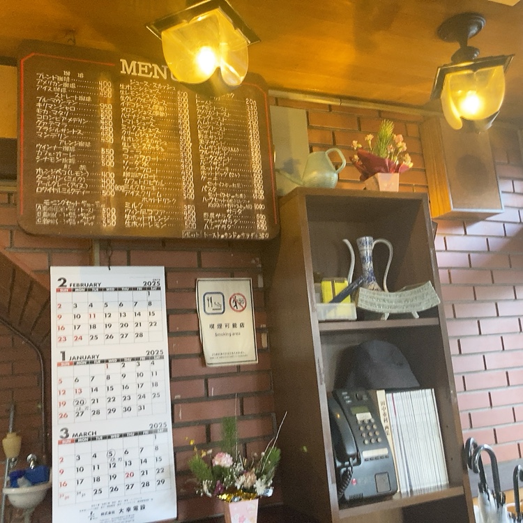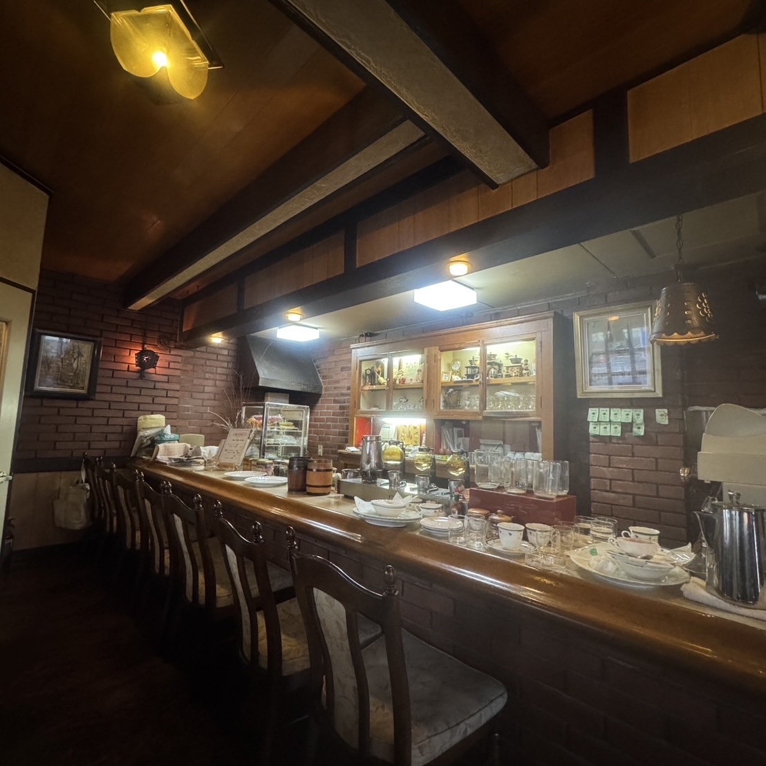 シックで落ち着いた雰囲気が漂い、昭和の喫茶店らしいレトロな内装が特徴的。