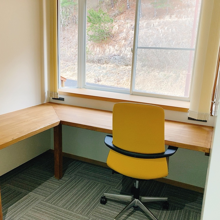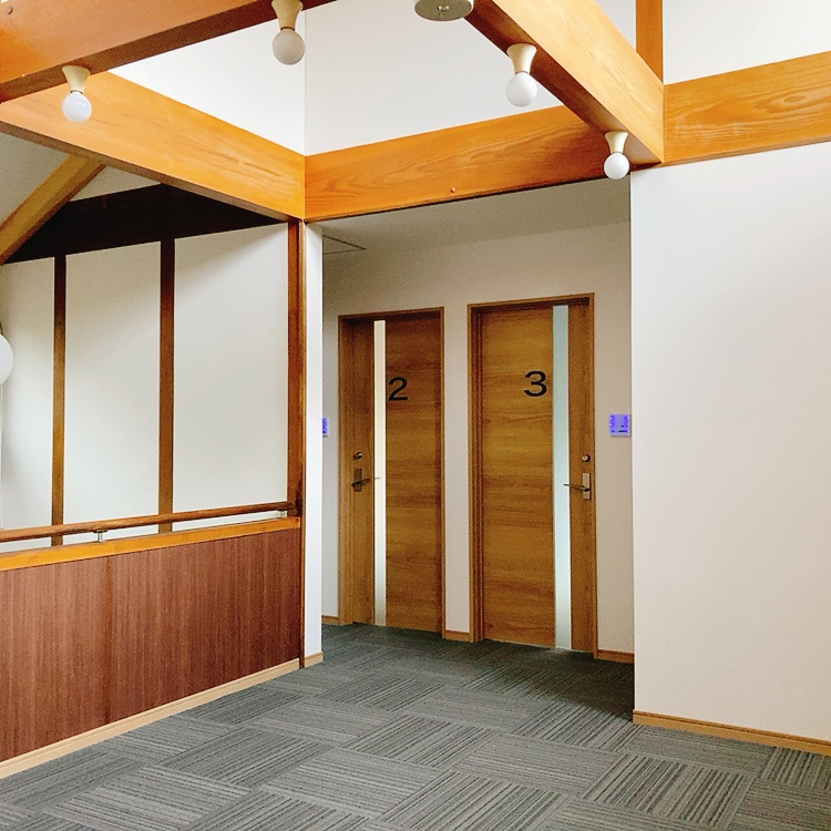 ロールスクリーンで仕切られた個人ブース5席、Wi-Fiの完備された24席のコワーキングペースのある研修センターもあります。