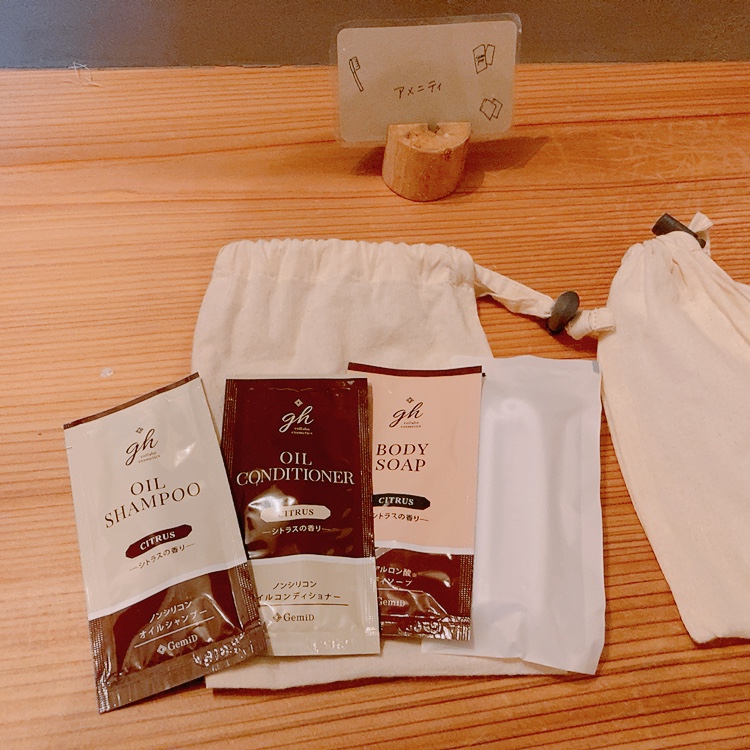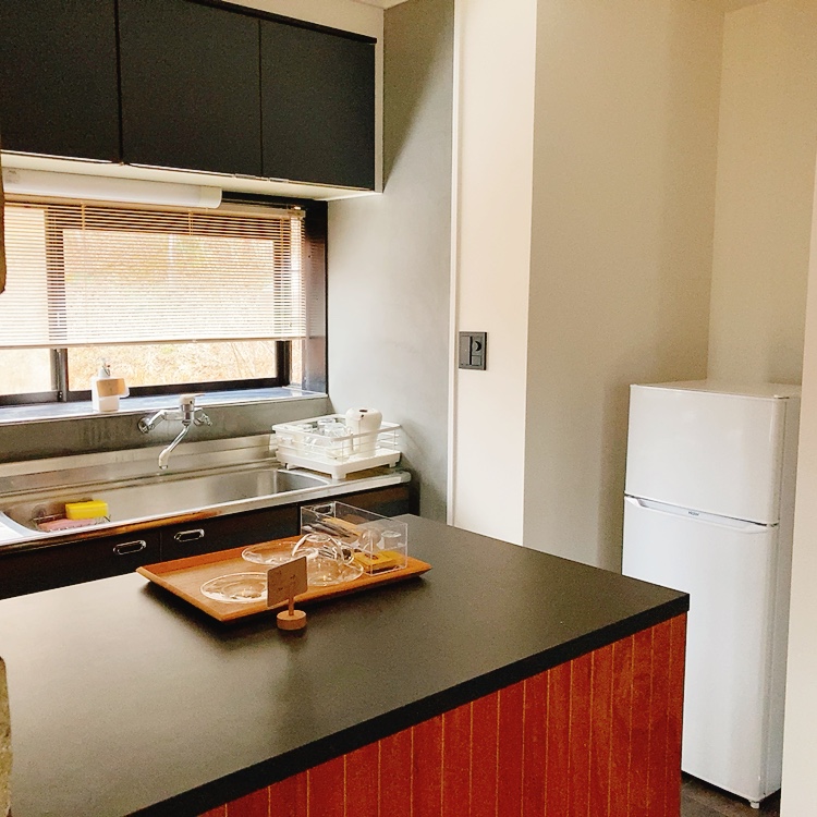 キッチンには冷蔵庫、炊飯器、電子レンジ、ガスコンロもあるため料理もできます🔪シャンプーなどのアメニティもあり。