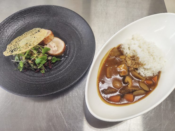 | 鳥取県食材を使い、一品目の料理工程を派生しました。カレーの消費量が1位を取ったこともあるので親しみやすいと思い、今回のコンテストに組み込みました。 |