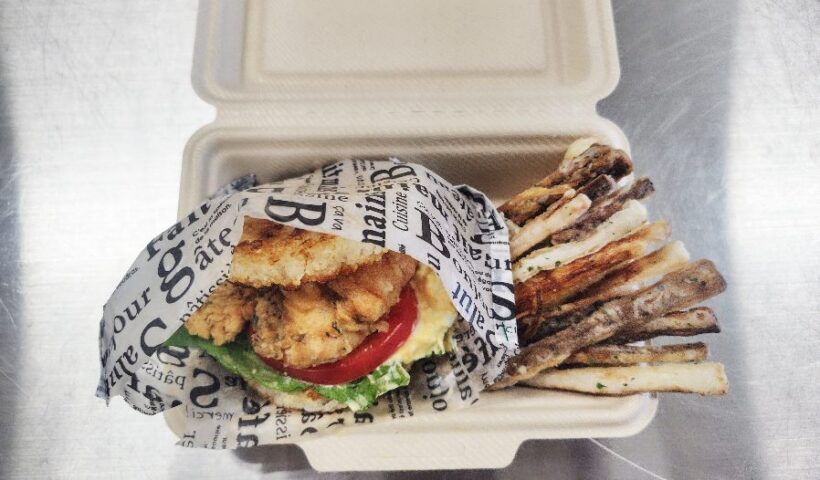 バンズを星空舞にて作り、大山どりフィレオと、鳥取名産らっきょう入りタルタルソースで重ねた、こだわりの詰まった御料理でした。食べる程に楽しく、豊かさを感じる事ができました。