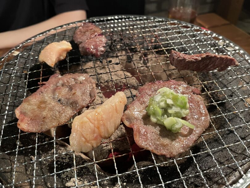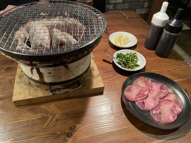 炭火の七輪をセットしてもらったら、まずは「タン」から味わいます!