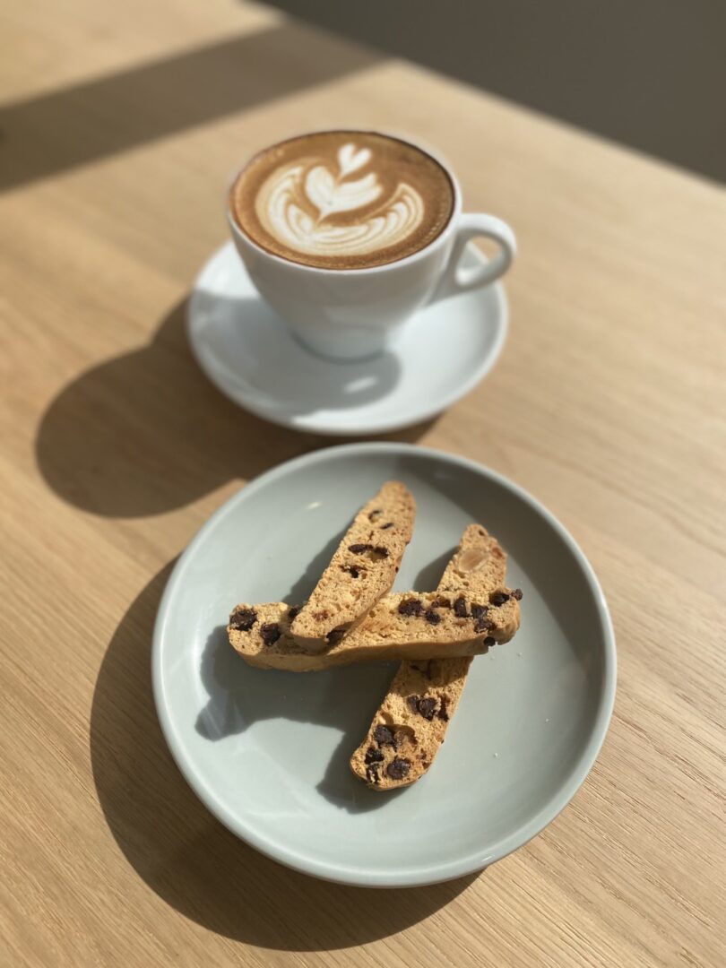パフェには季節のフルーツと、チョコとアーモンドのビスコッティがのっています。