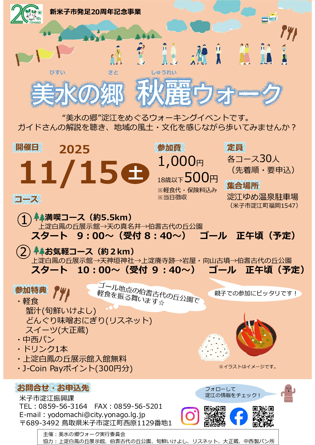 ■新米子市発足20周年記念事業 美水の郷 秋麗ウォーク📍淀江ゆめ温泉駐車場