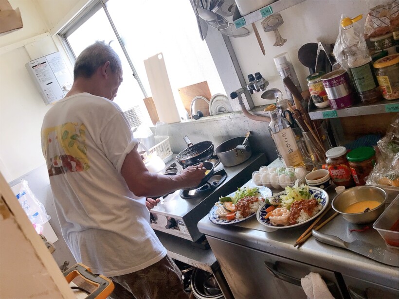 店主・丸山伊太朗さん(通称・丸さん)は、東京・中野で1980年に「無国籍食堂カルマ」を創業し、34年間経営されました。中野のお店は料理研究家の高山なおみさんや枝元なほみさんらも輩出する伝説的なお店でした。その後、2012年に鳥取に移住され、2015年から「tottoriカルマ」を創業されました。