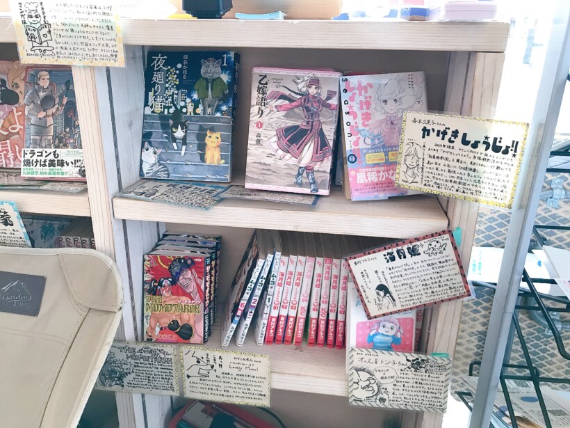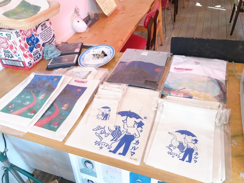 店内にはカルマグッズなどの物販コーナー、マンガ・絵本・ZINEのコーナーがありました!