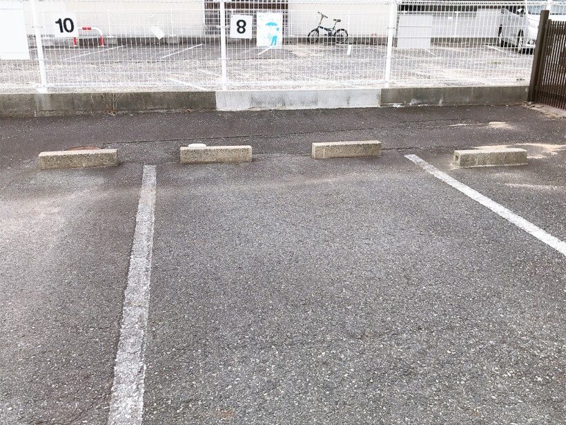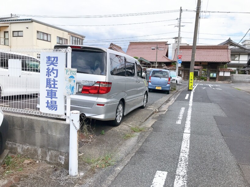 カルマおじさんの貼り紙がある、こちらの契約駐車場に停めます