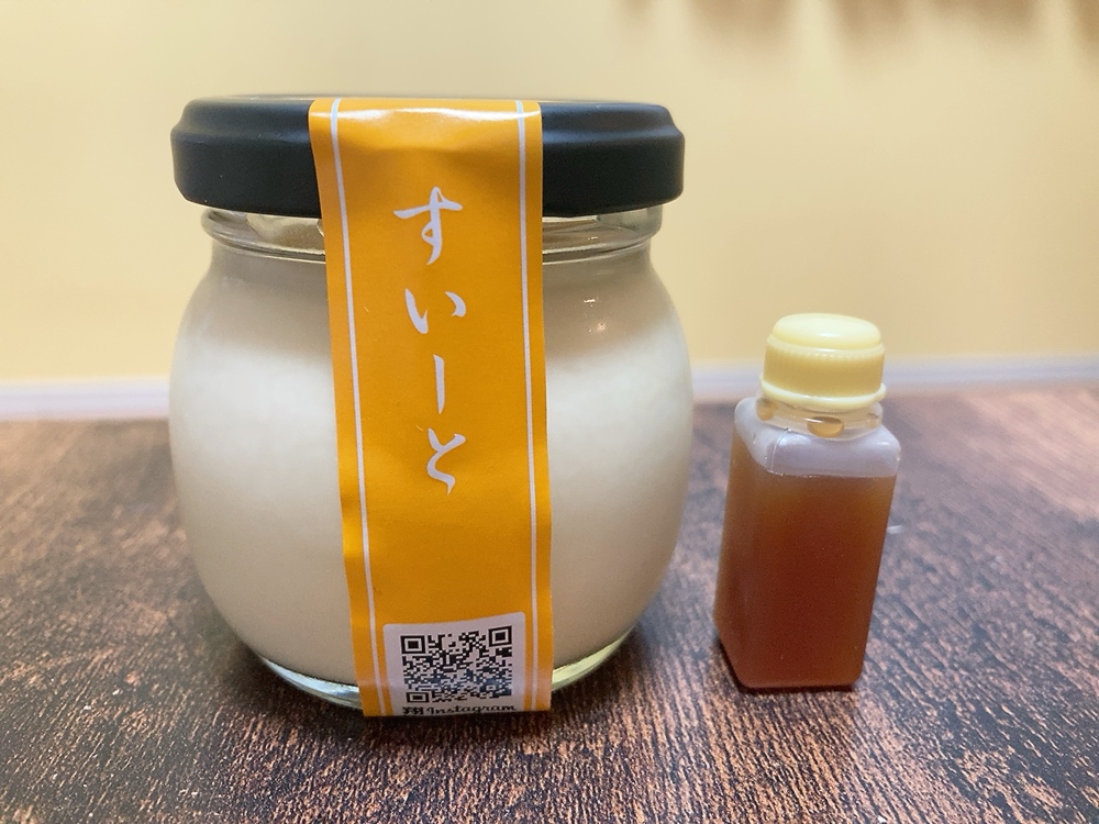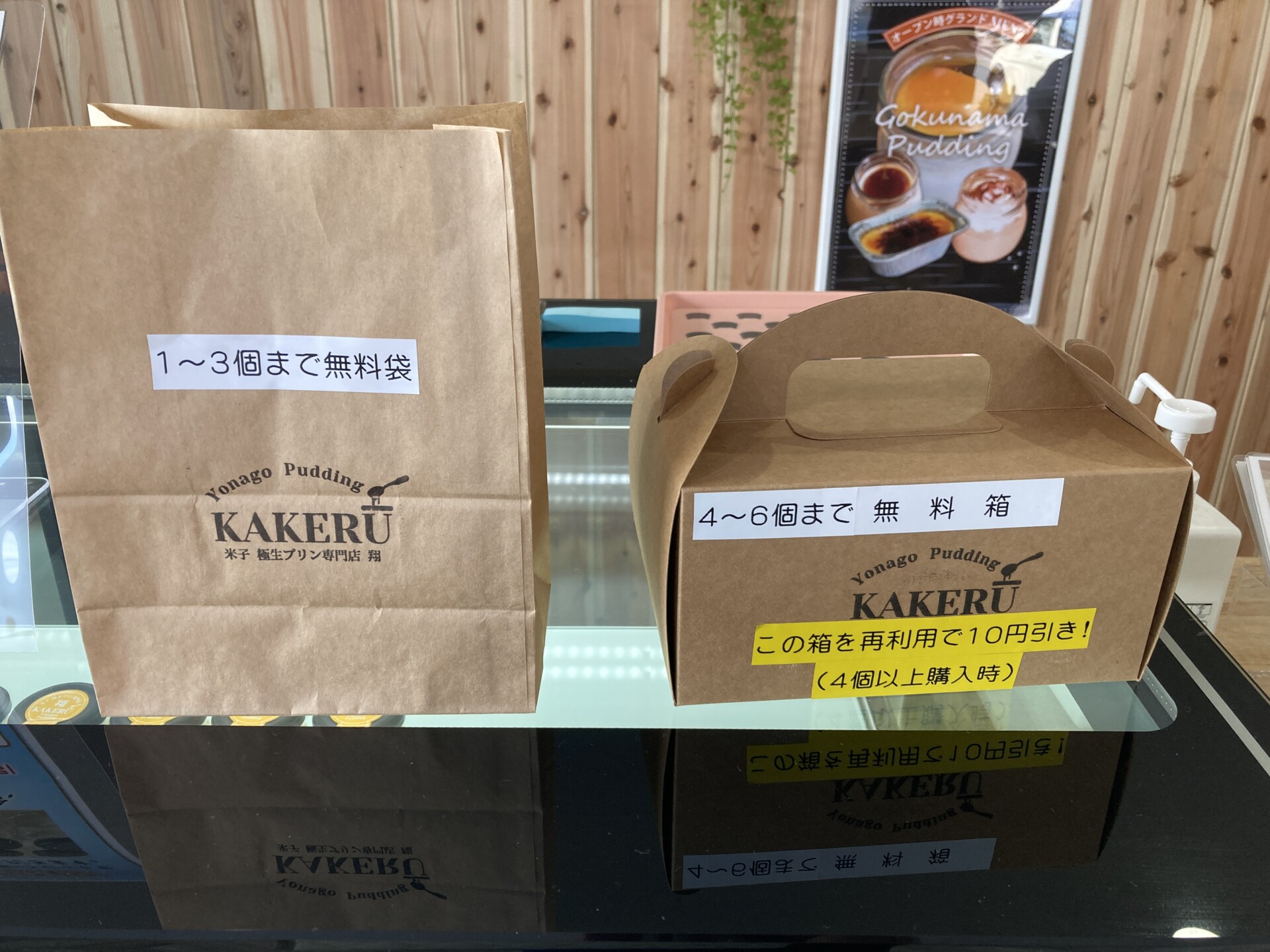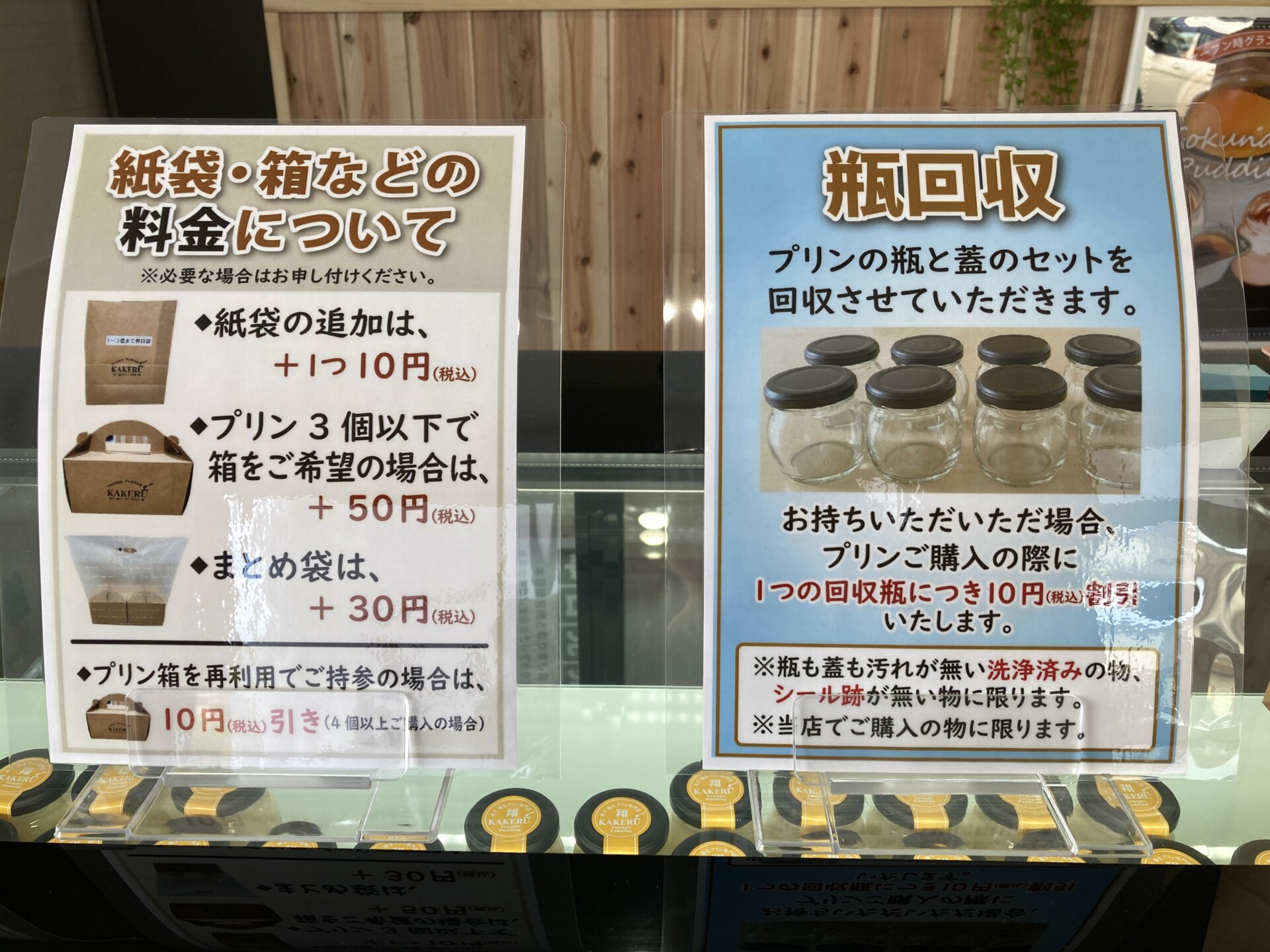 きれいに洗ってシール跡のないプリンの瓶とフタをセットで持って行くと、10円引きになるうれしいサービスも。