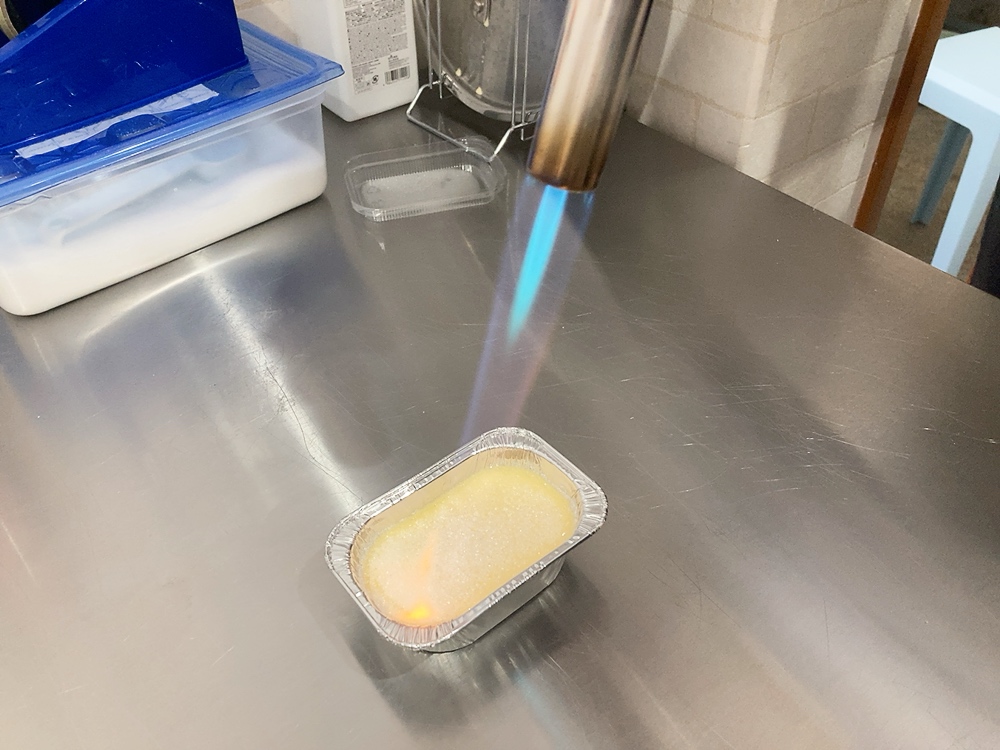 クレームブリュレは、注文後にバーナーでキャラメリゼして仕上げるライブ感のあるスイーツ。