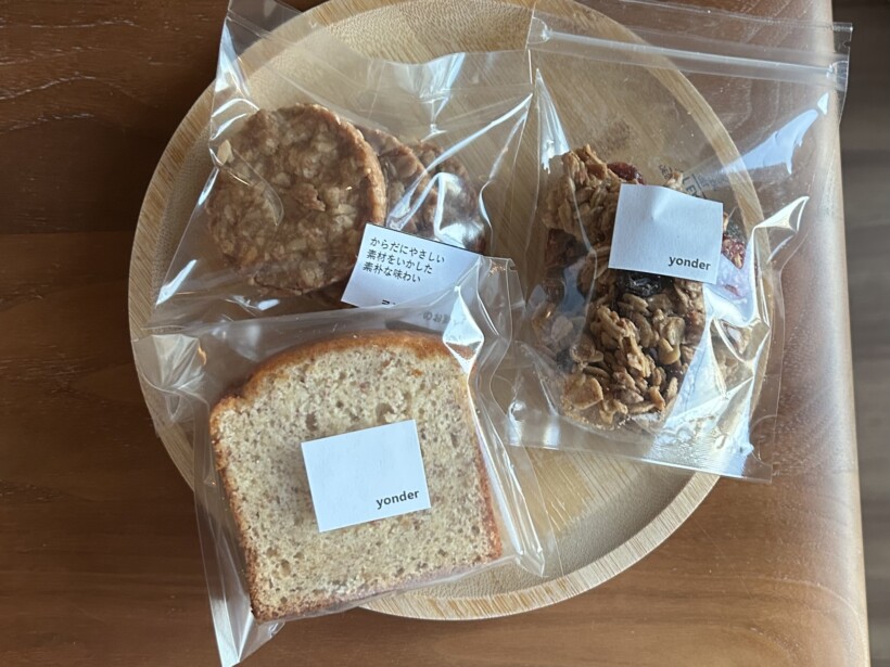 今回は、ヨンダーの自家製グラノーラ50gと、有機オートミールのクッキーと甘酒のパウンドケーキを購入しました。