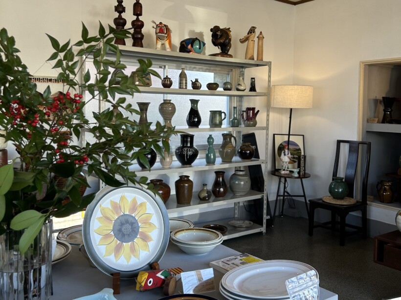 数多くの食器や壺などの古道具に加え、素材にこだわった焼き菓子も人気です。
