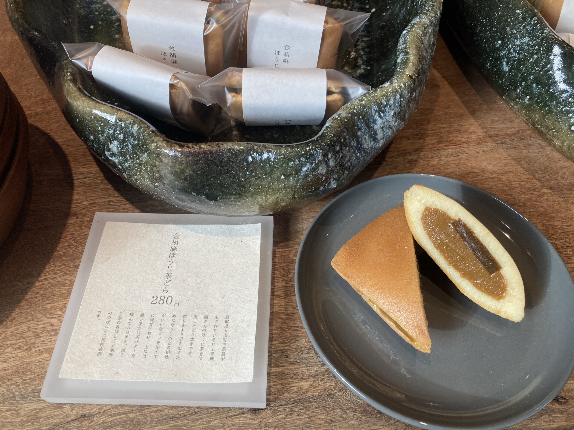 餡子には八頭町「田中農場」の無農薬大納言小豆、抹茶やほうじ茶には大山町「井上青輝園」の高級茶葉、バターは大山町産、卵は小川養鶏場の新鮮卵を使用。