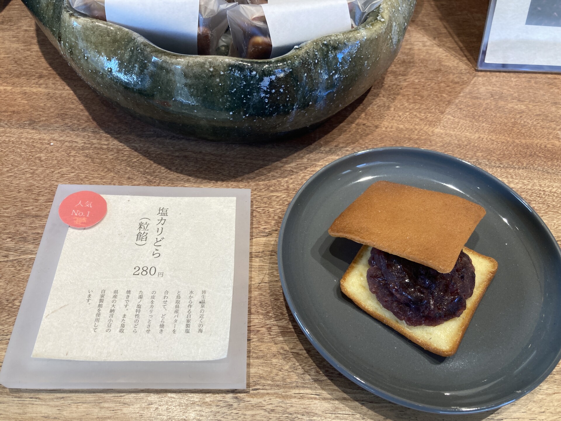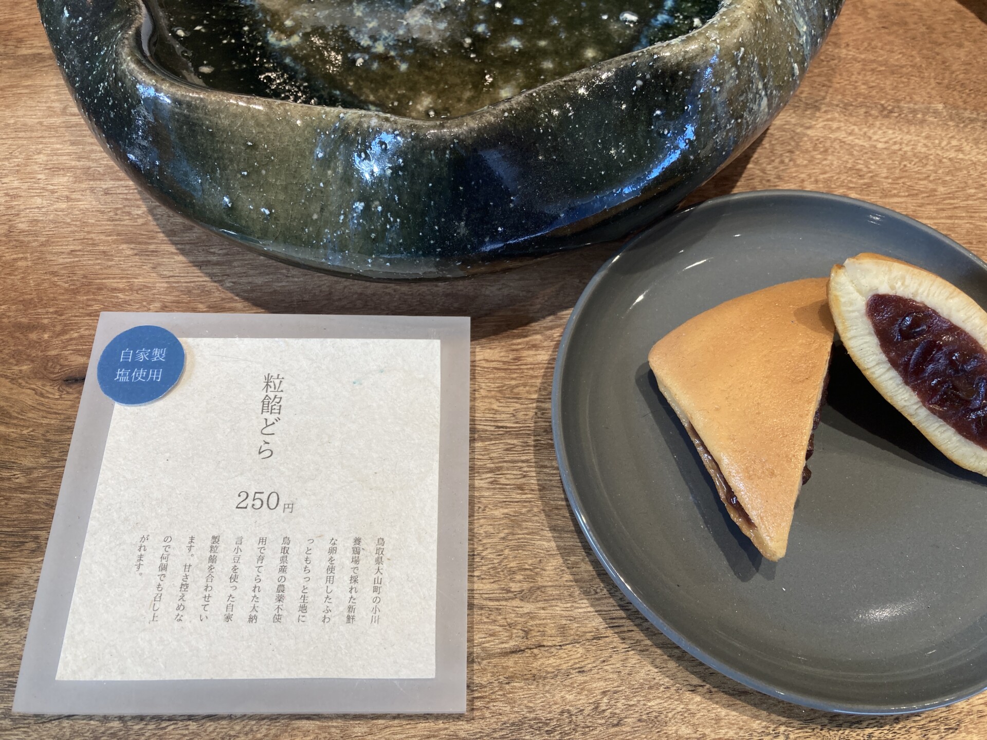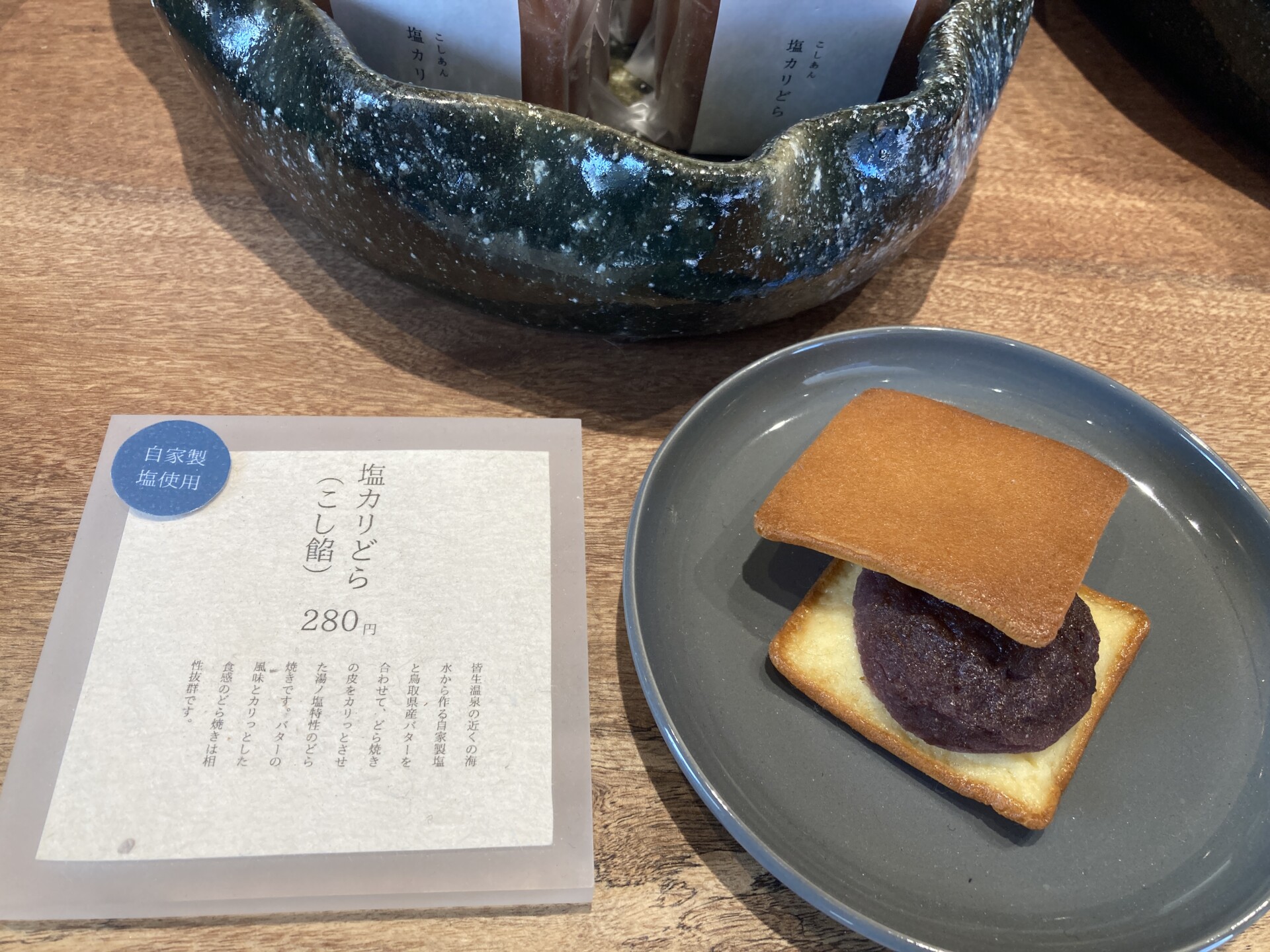 こちらのお店では、湯ノ塩の象徴でもある「塩の結晶」をイメージした四角いどら焼き、3種類の自家製餡、3種類のバター、そして皆生の海水から丁寧に炊き上げた自家製塩を自由に組み合わせて楽しめる、イートイン限定の特別なプレートの提供が始まりました。