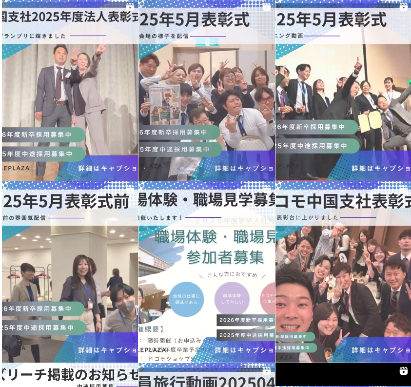 テレプラザさんのアカウントでは求人情報だけでなく、業務の様子や社員旅行の様子を動画やスライドで定期的に投稿されており、スタッフ方の顔も見え、会社の良い雰囲気が伝わるコンテンツ作りをされていました。