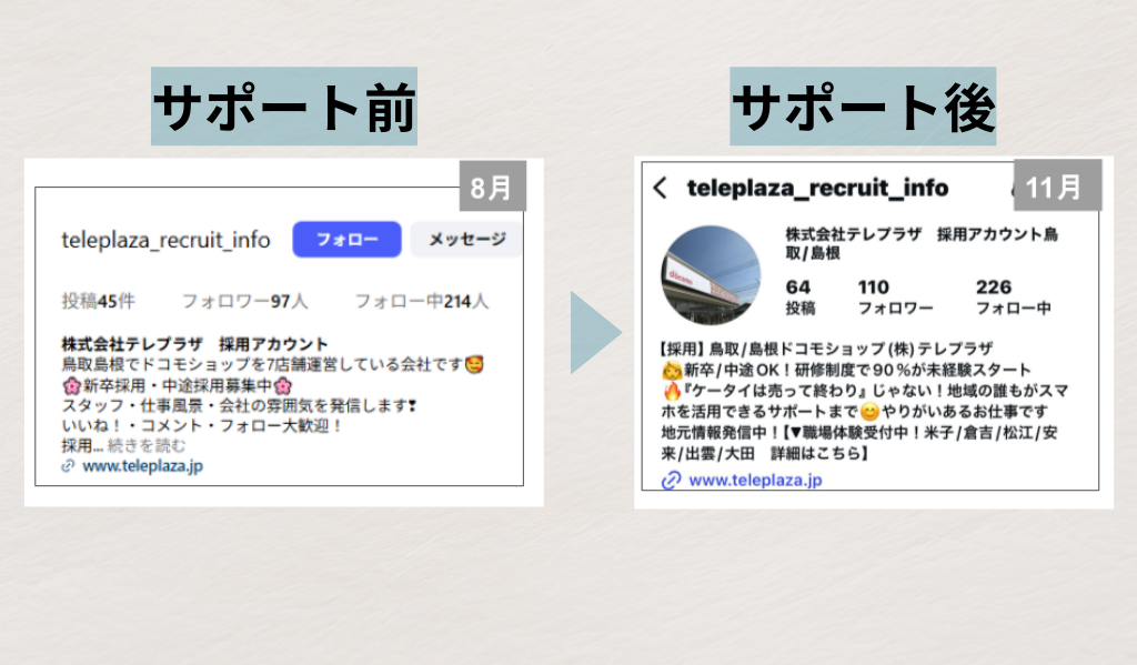 株式会社テレプラザ様Instagram採用アカウント運用サポート|SNS運用サポート
