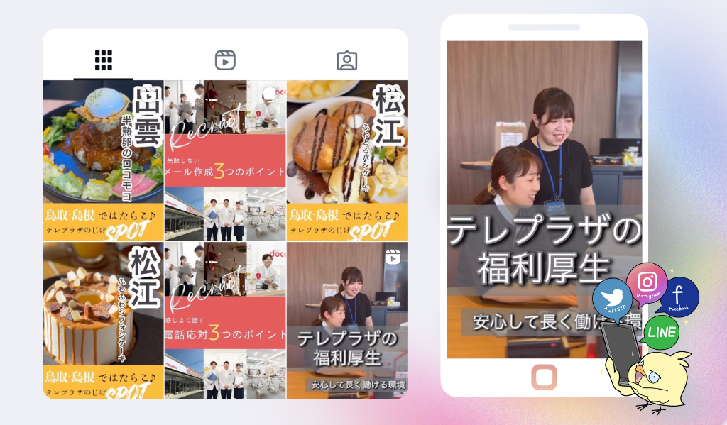 鳥取・島根両県でドコモショップ7店舗を運営する株式会社テレプラザ様の、自社採用アカウントの運用サポートをWebもりが担当させていただきました。