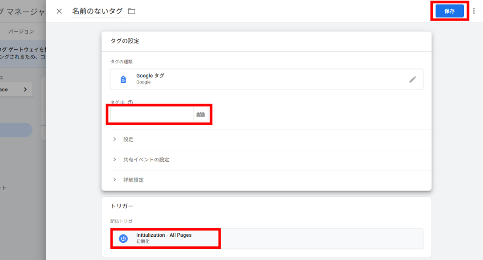「トリガー」は「Initialization – All Pages」が設定されていることを確認して「保存」を選択