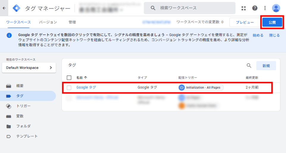 Googleアナリティクス、GA4、コンバージョンタグ、広告タグなどを1つの画面で一括管理できます。